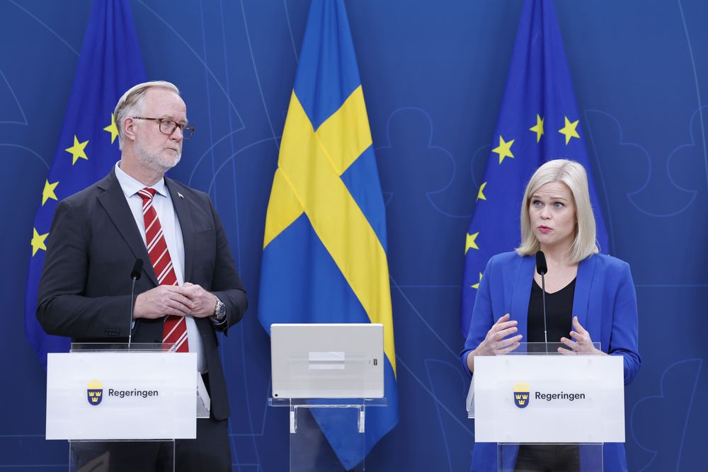 Foto Christine Olsson/TT رئيس الحزب الليبرالي يوهان بيرسون و وزيرة المساواة، بولينا براندبري