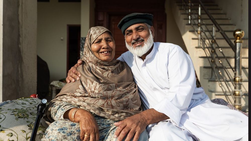 57 year-old, Maqsood Ahmed, with his mother, 85 year-old, Shamim Akhtar at their home in District Lodhran, Punjab, Pakistan.